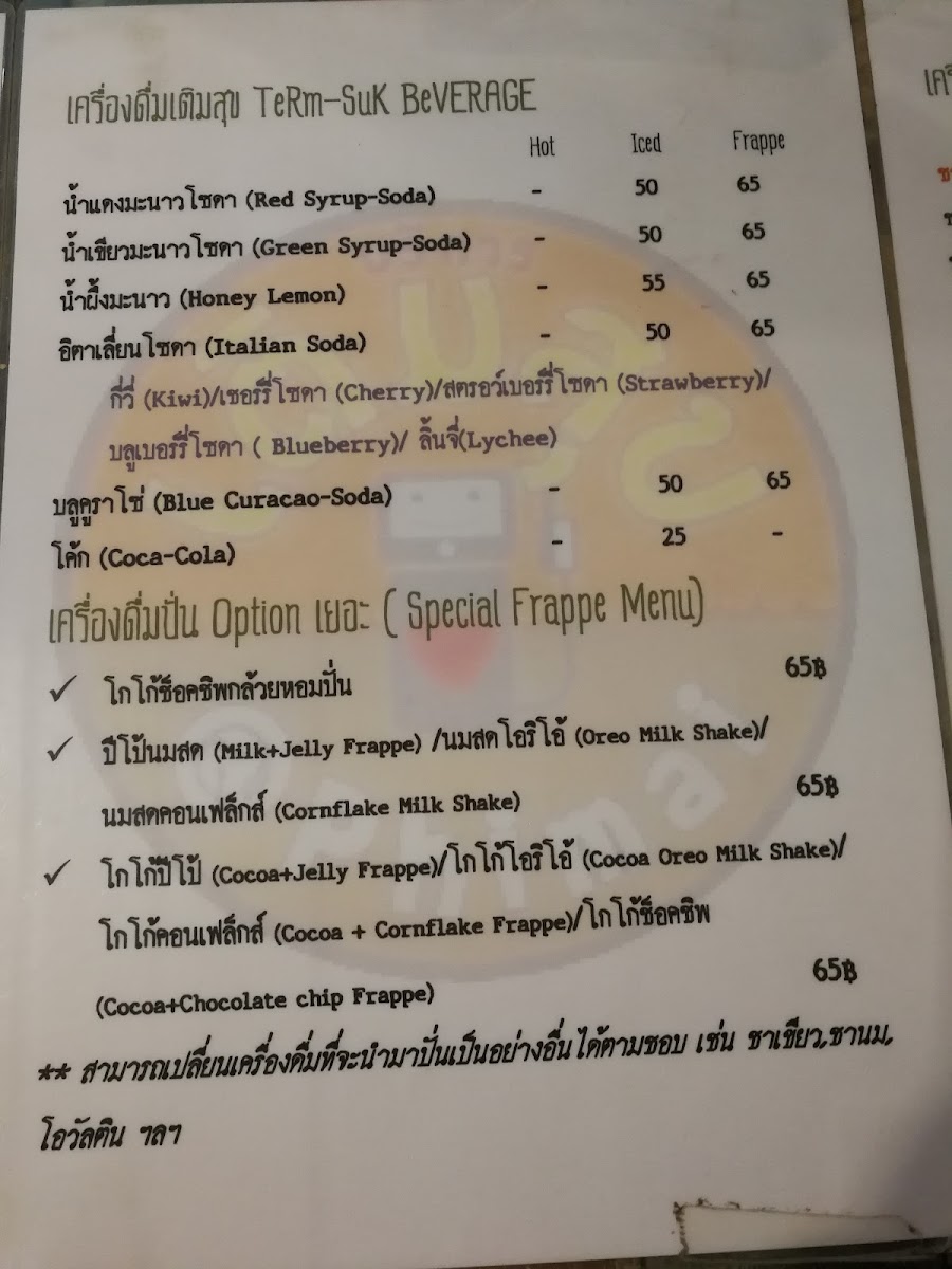 TermSuk Cafe - เติมสุข คาเฟ่ พิมาย Menu